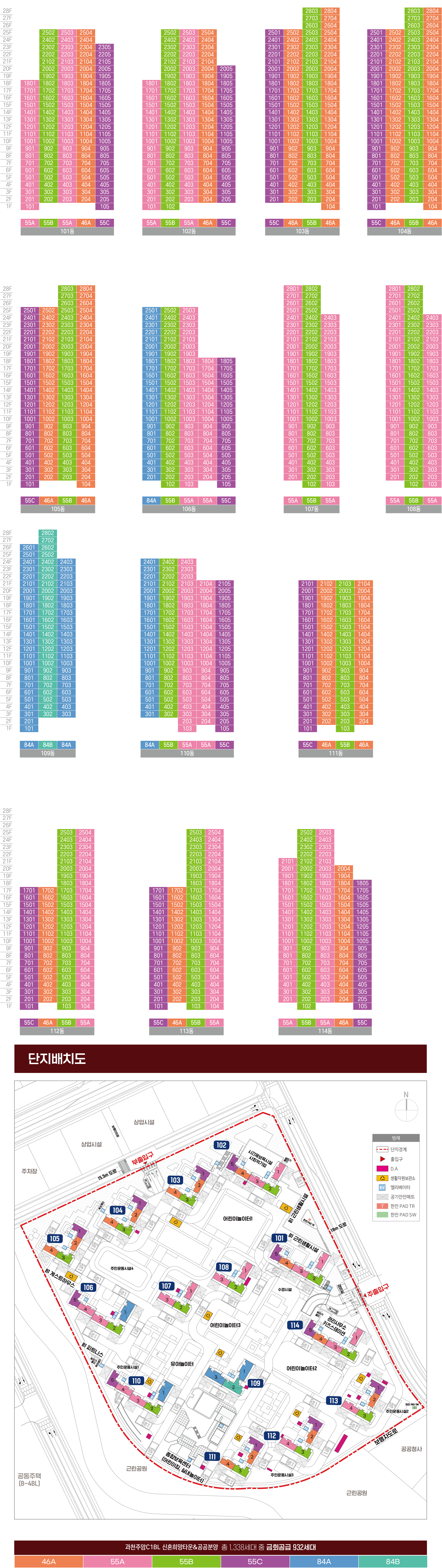 - ※ 본 동호배치도의 각 시설 설치계획 등은 사업추진과정에서 변경·취소될 수 있습니다.