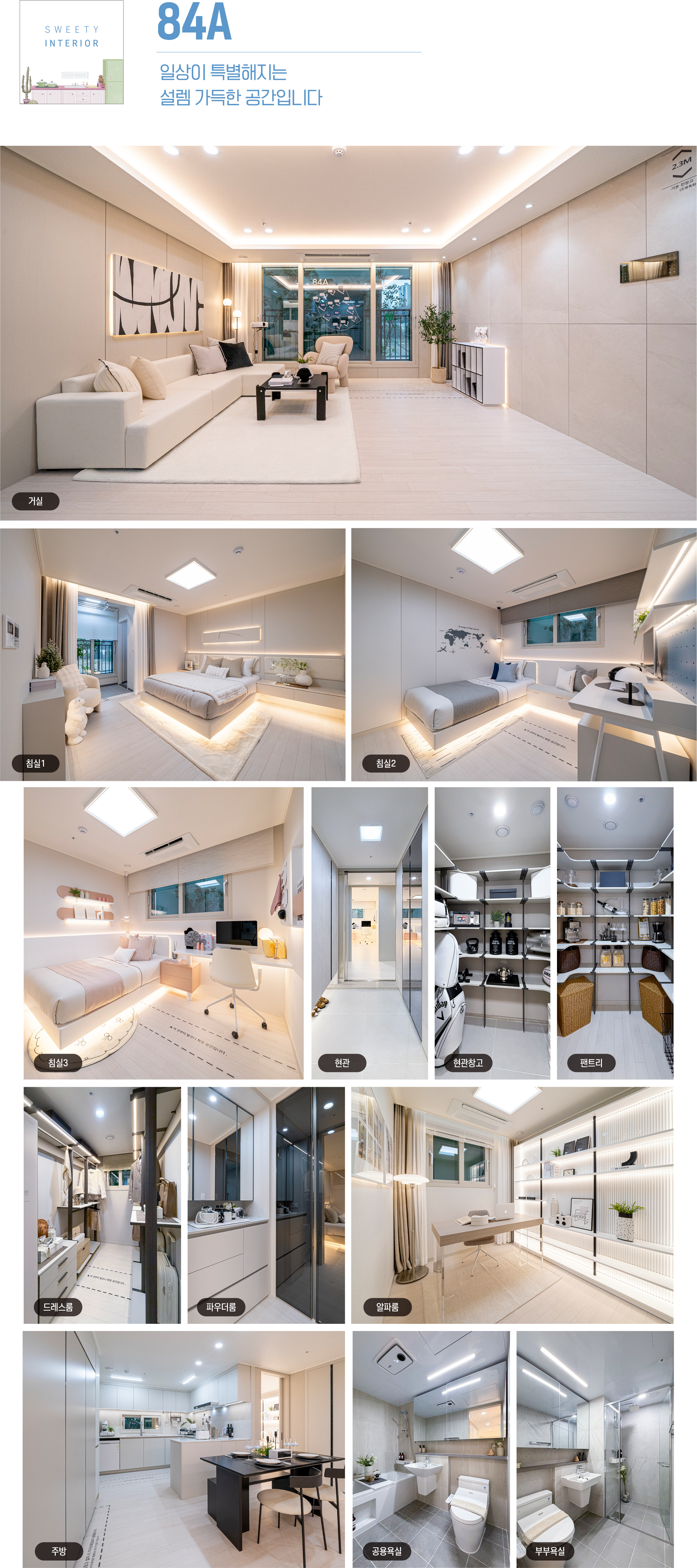 - ※ 상기 이미지는 실제 시공 시 설치되지 않는 전시품[가구, 전자제품, 실내장식품, 조명, 도배면 별도마감, 팬트리 키큰장 등]이 포함되어 있으며, 자세한 내용은 주요마감재 설치내역을 참고하시기 바랍니다.